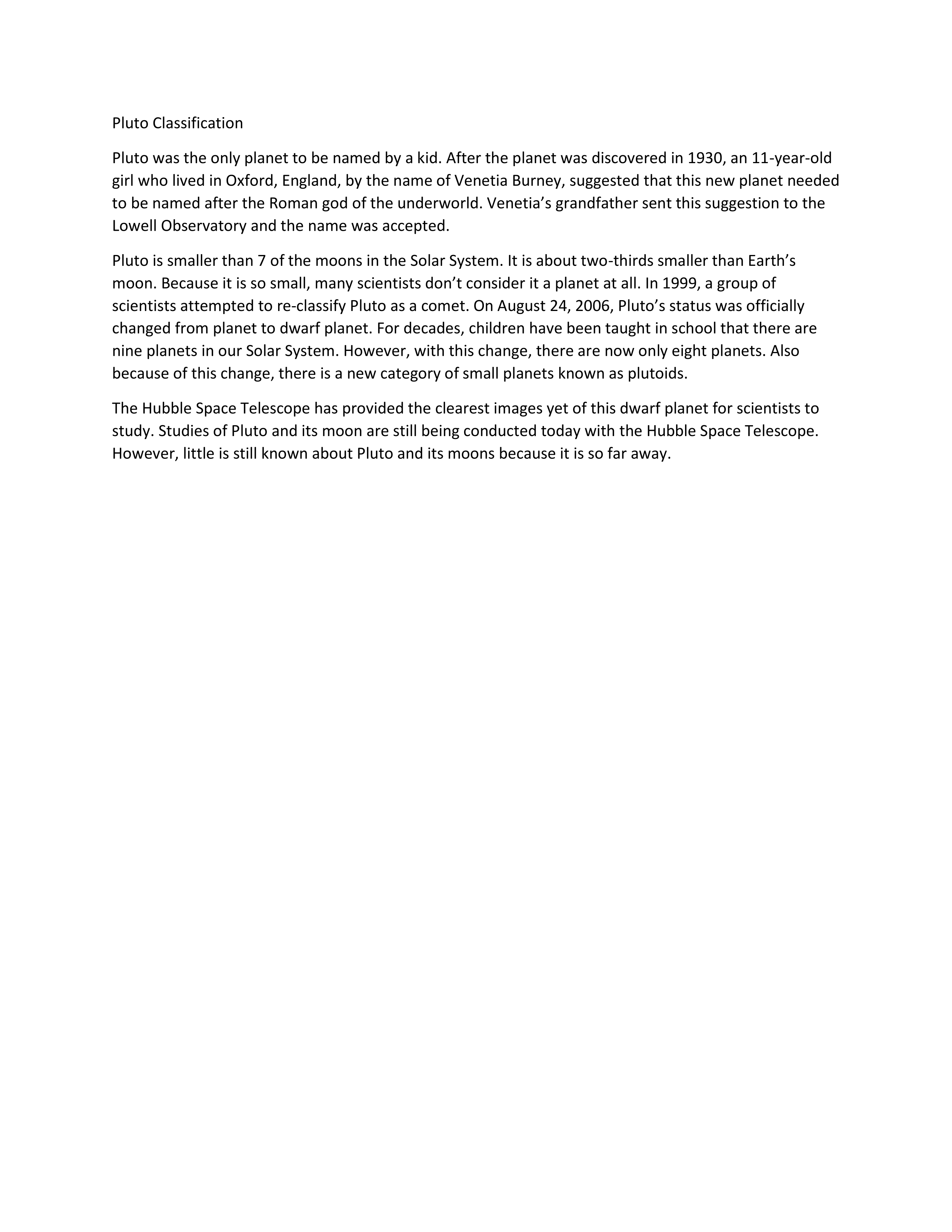 What is Pluto classified as?