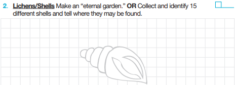 Make an “eternal garden.” OR Collect and identify 15 different shells and tell where they may be found.