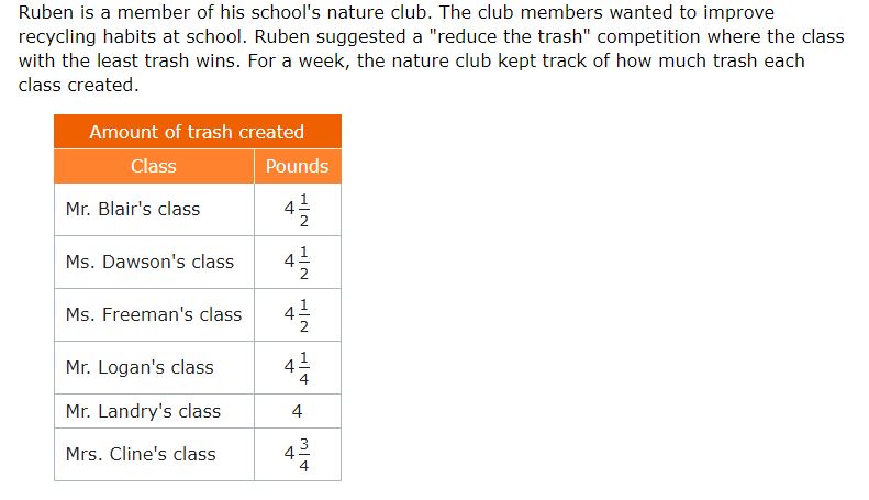 How much more trash was created by the class with the most trash than the class with the least trash?
