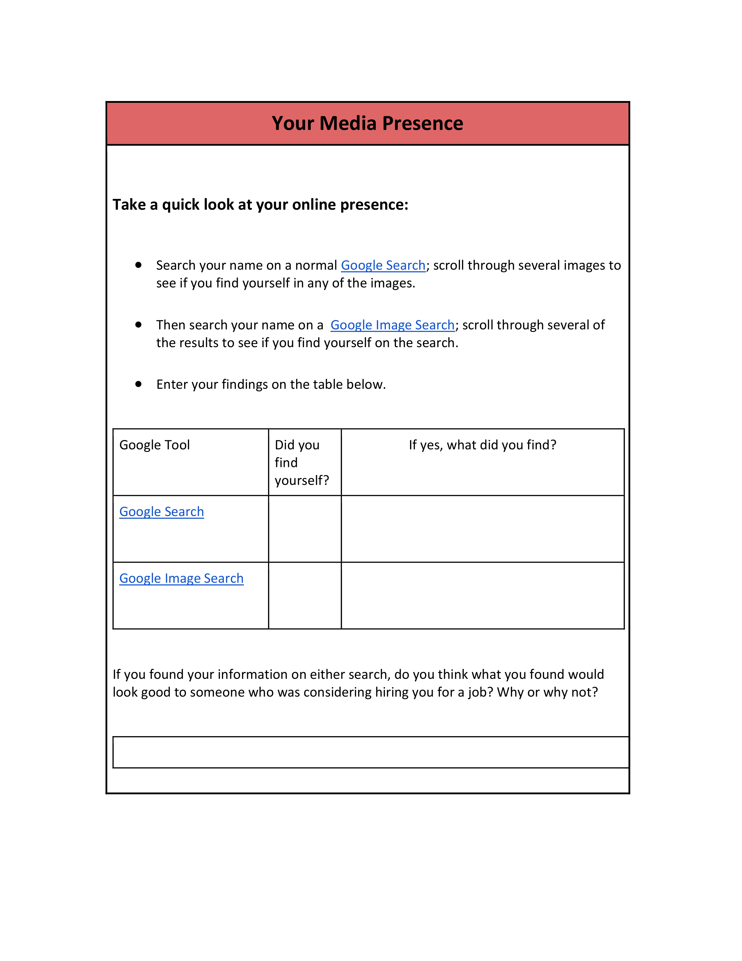 If you found your information on either search, do you think what you found would look good to someone who was considering hiring you for a job?