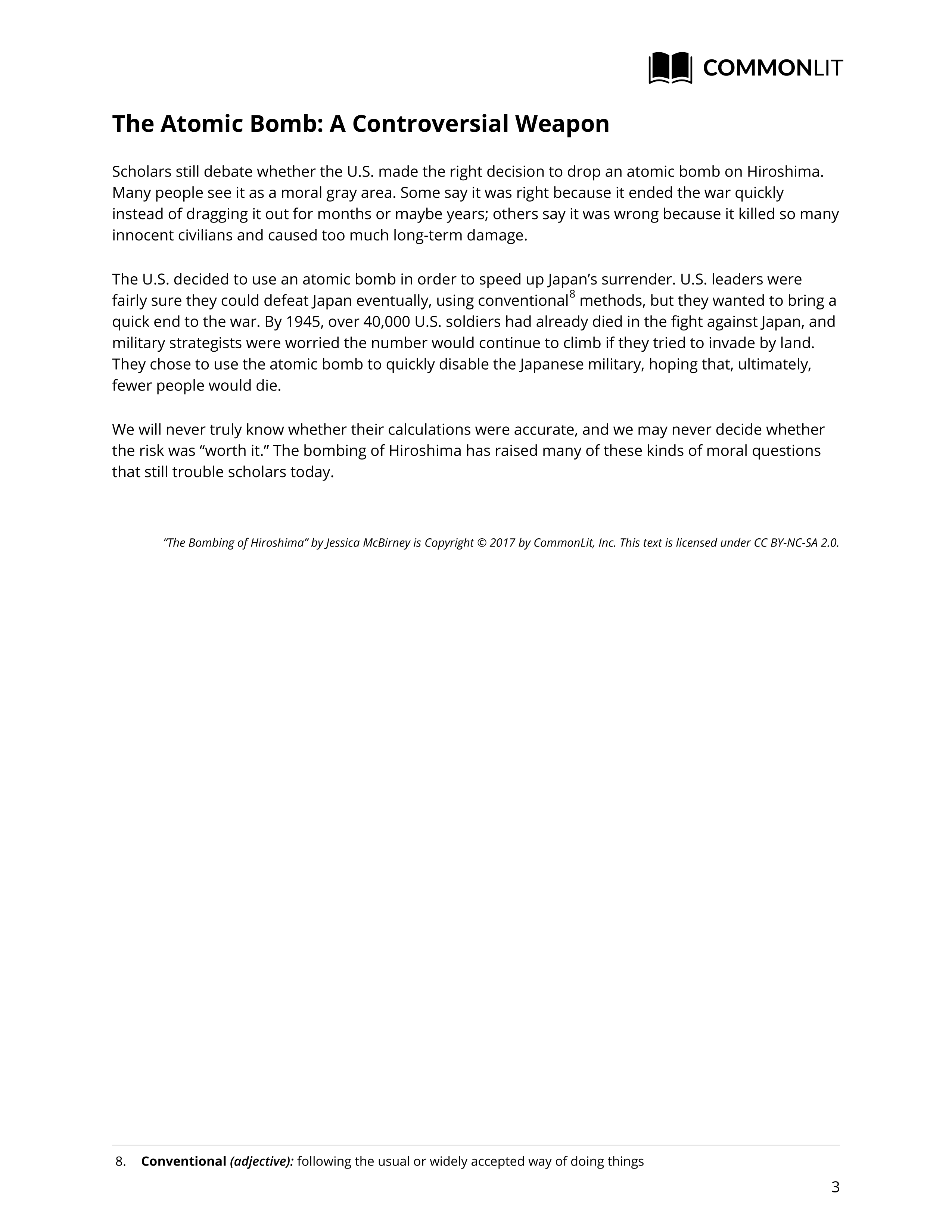This Formative supplements a Hiroshima HyperDoc lesson, but could be used as a lesson by itself. It helps students learn about the Bombing of Hiroshima as they practice reading and writing comprehension.