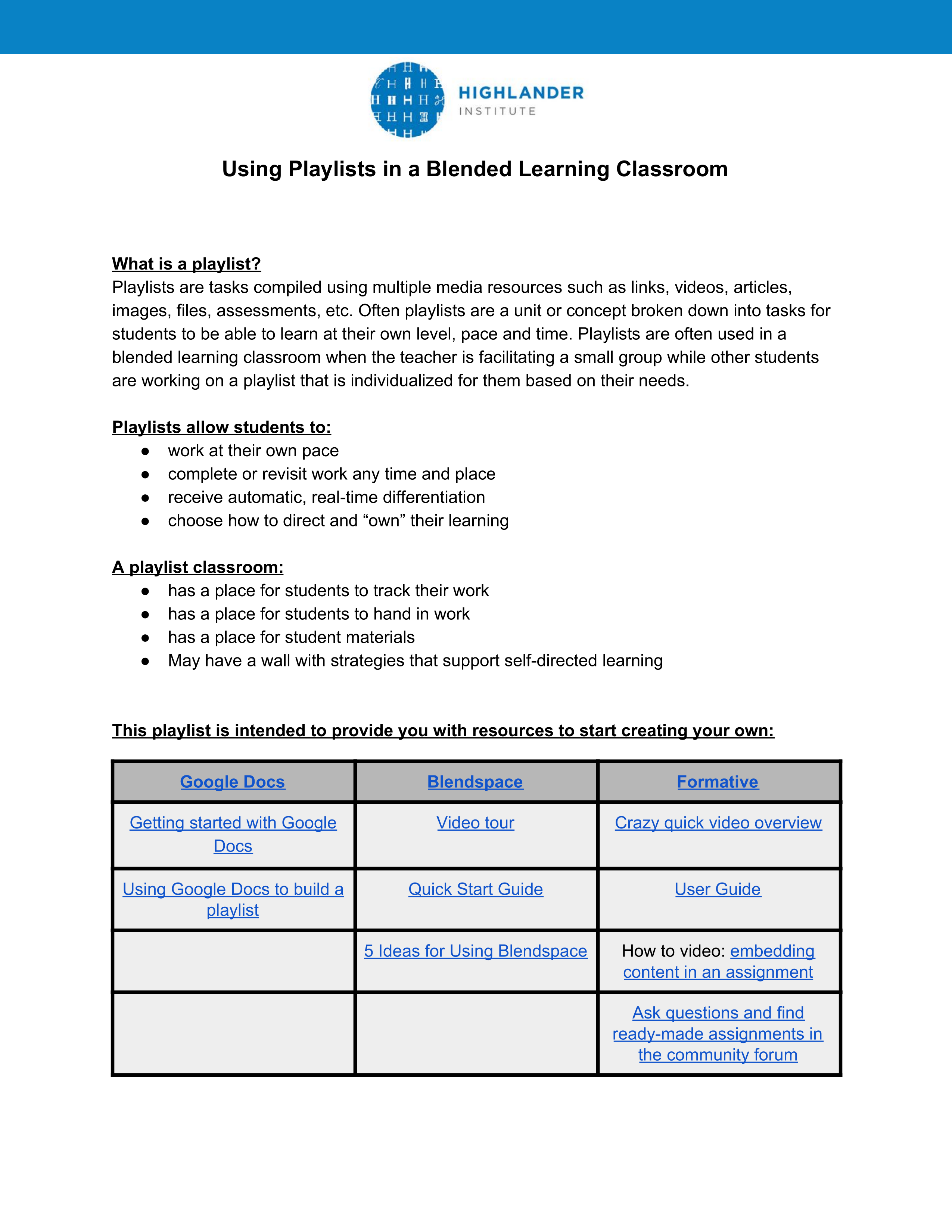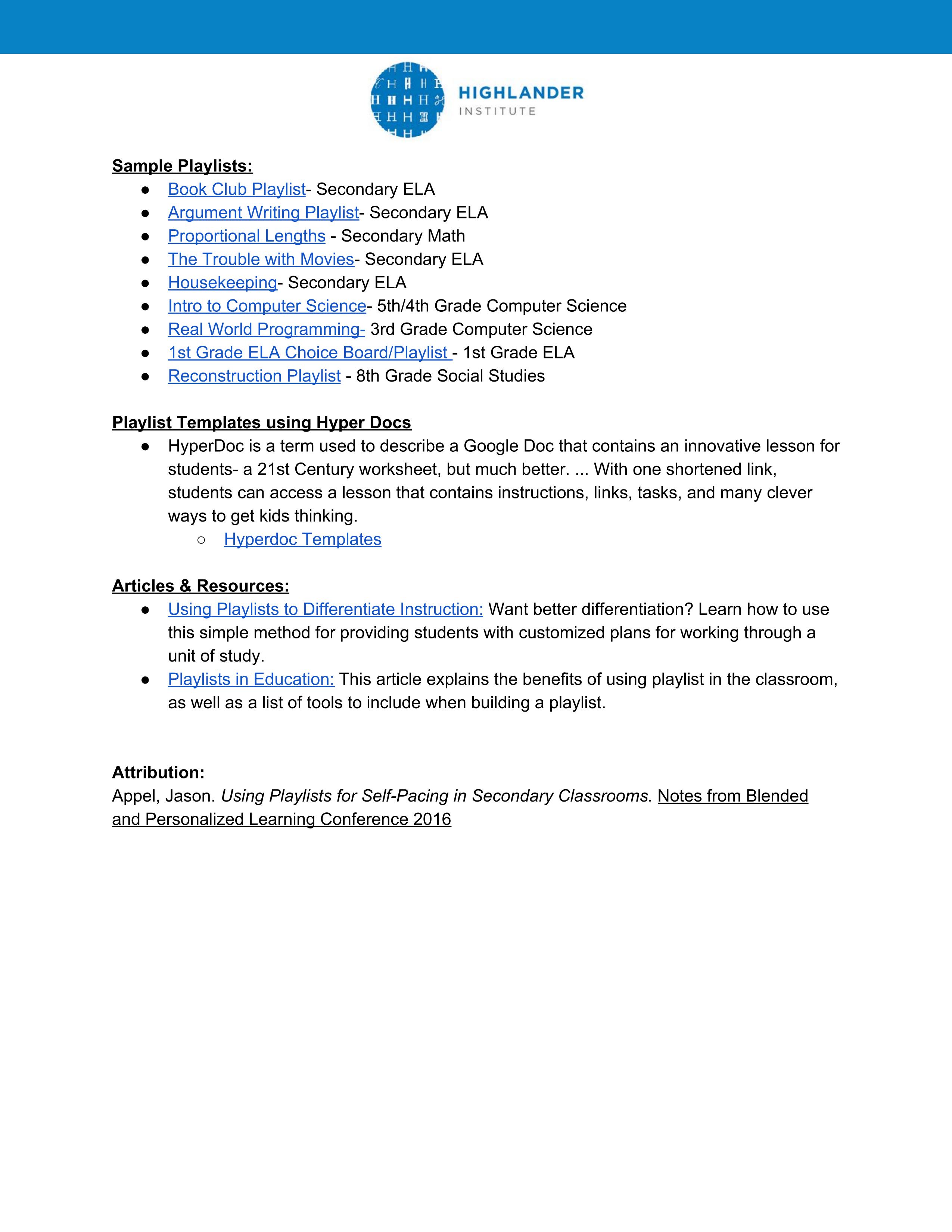 Using Playlists to Differentiate