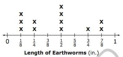 Using the line plot, what is the difference in the length between the longest earthworm and shortest earthworm?