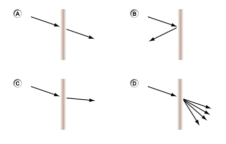 Several students are trying to determine which material would be best to use to cover the outside of the classroom windows so the sun does not heat up the room. They shine a beam of light at different materials and they record the path of the light for each material.