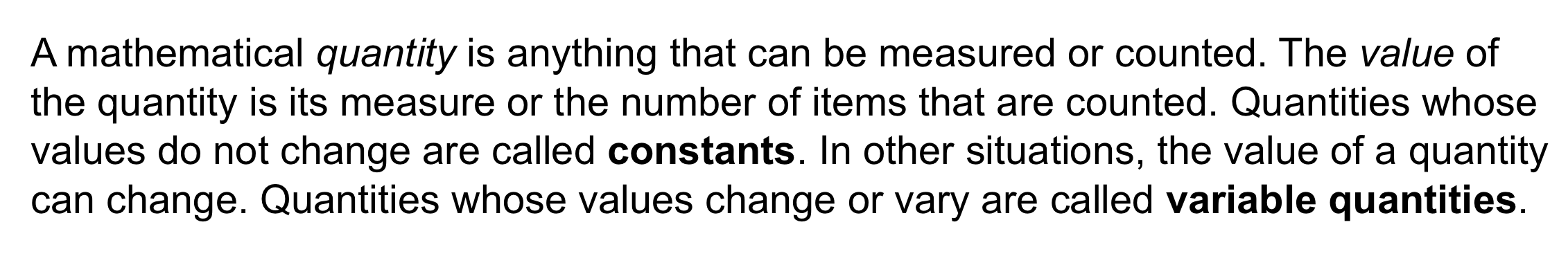 Vocabulary: In your own words, compare and contrast constants and variables (aka variable quantities).
