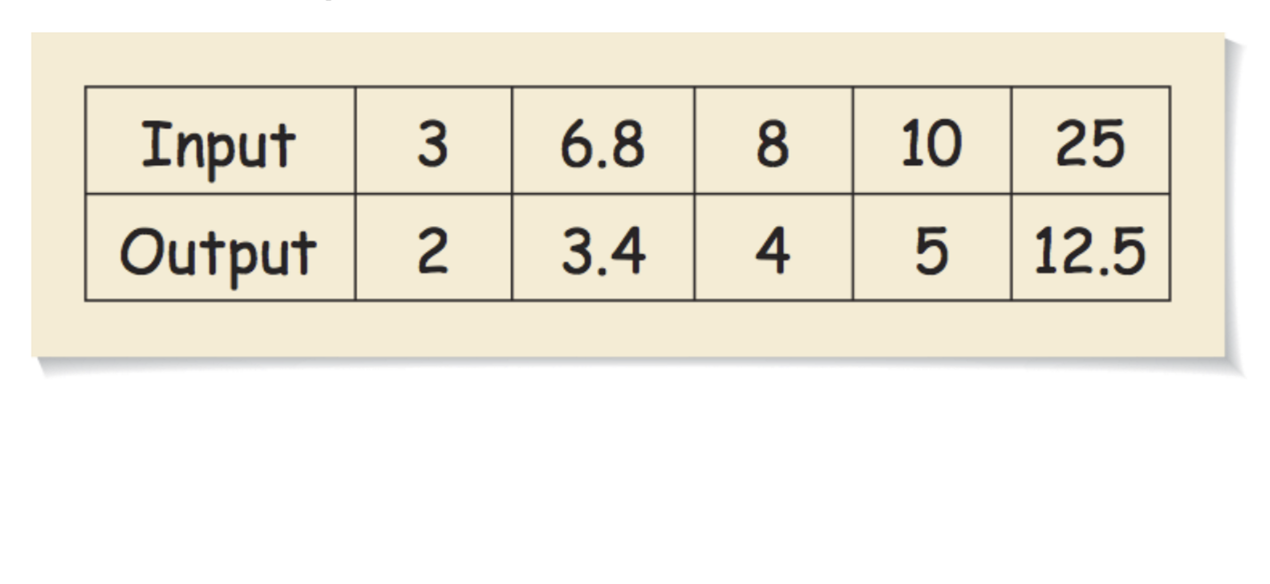 Error Analysis: Your friend looks for a pattern in the table below and claims that the output equals the input divided by 2. Is your friend correct? Explain.