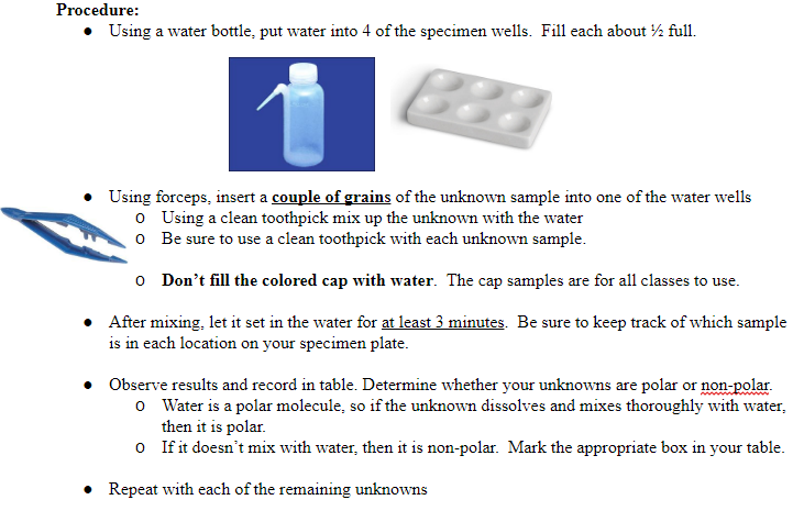 Complete the "then" portion of the Hypothesis: If the unknown sample is polar, then the sample will ...