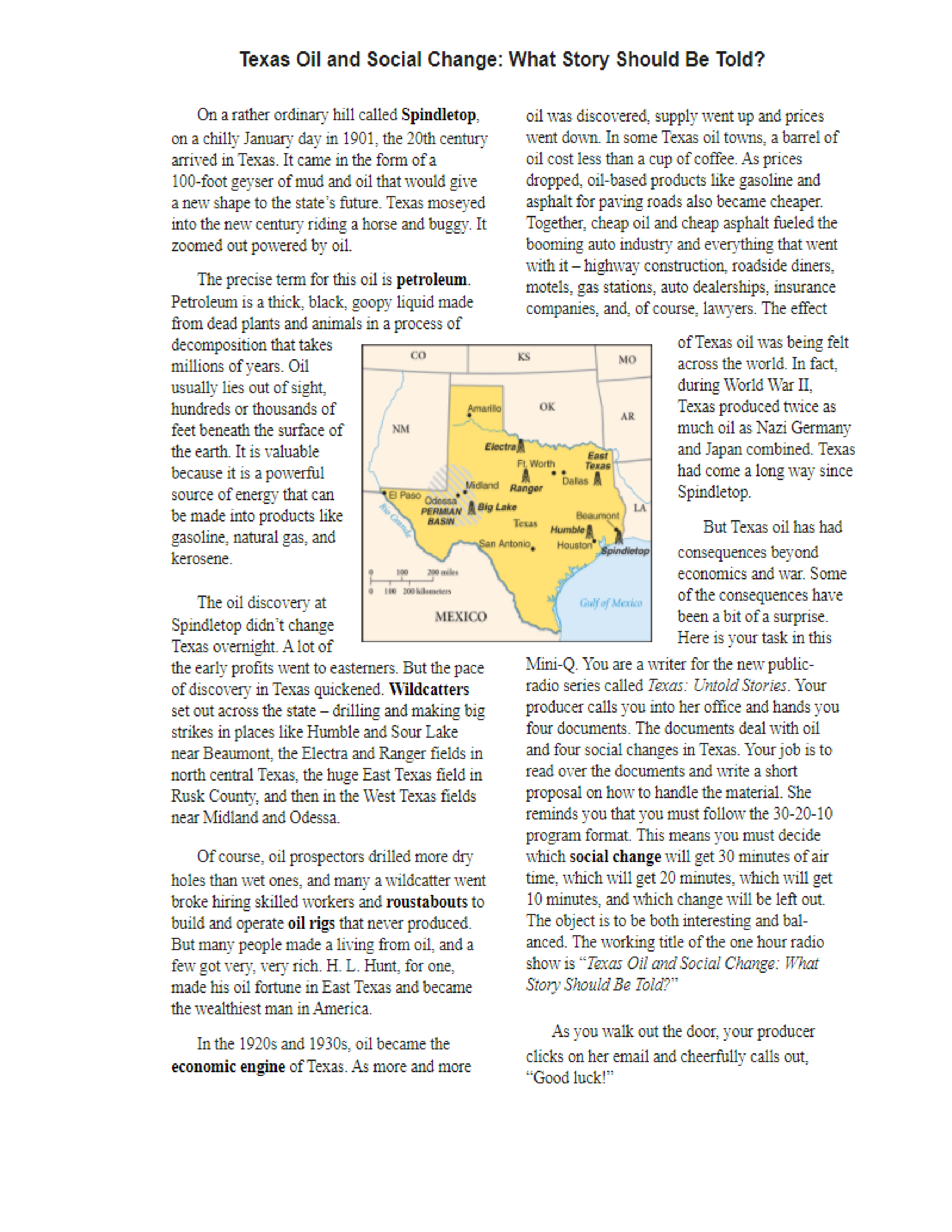 Exit Ticket Question: The discovery of huge reserves of oil at Spindletop in 1901 had which of the following effects?