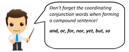 --- Compound Sentence: Contains two complete sentences (independent clauses) joined by a coordinating conjunction (for, and, nor, but, or, yet, so).