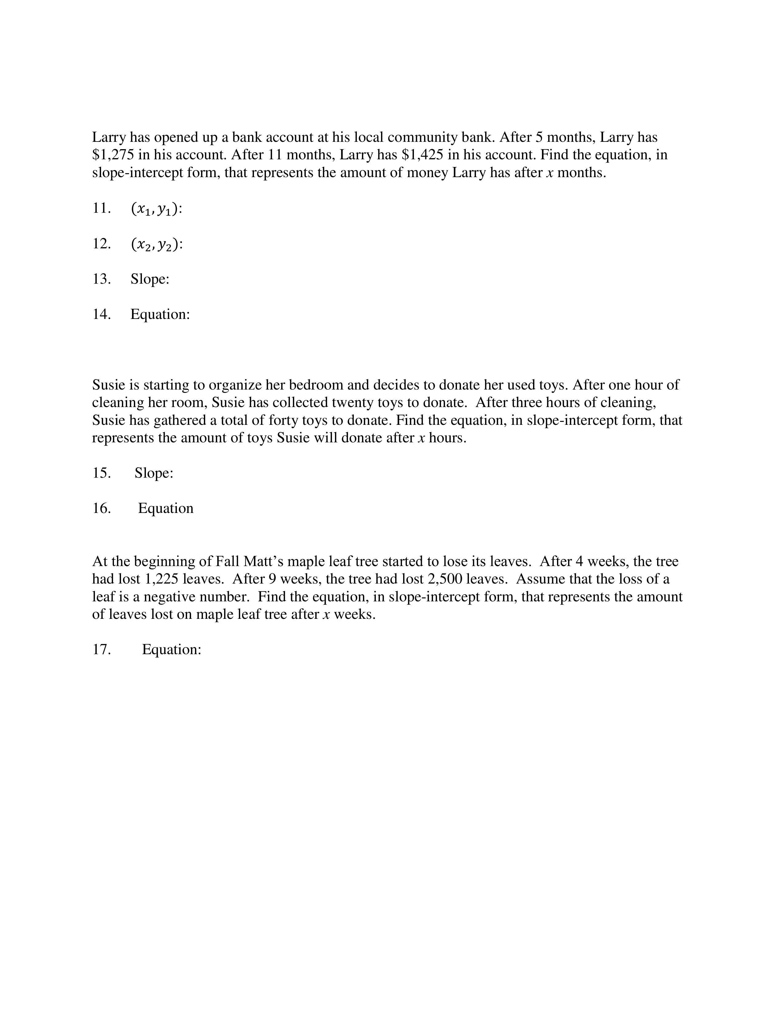 Writing a Linear Equation Given Two Points