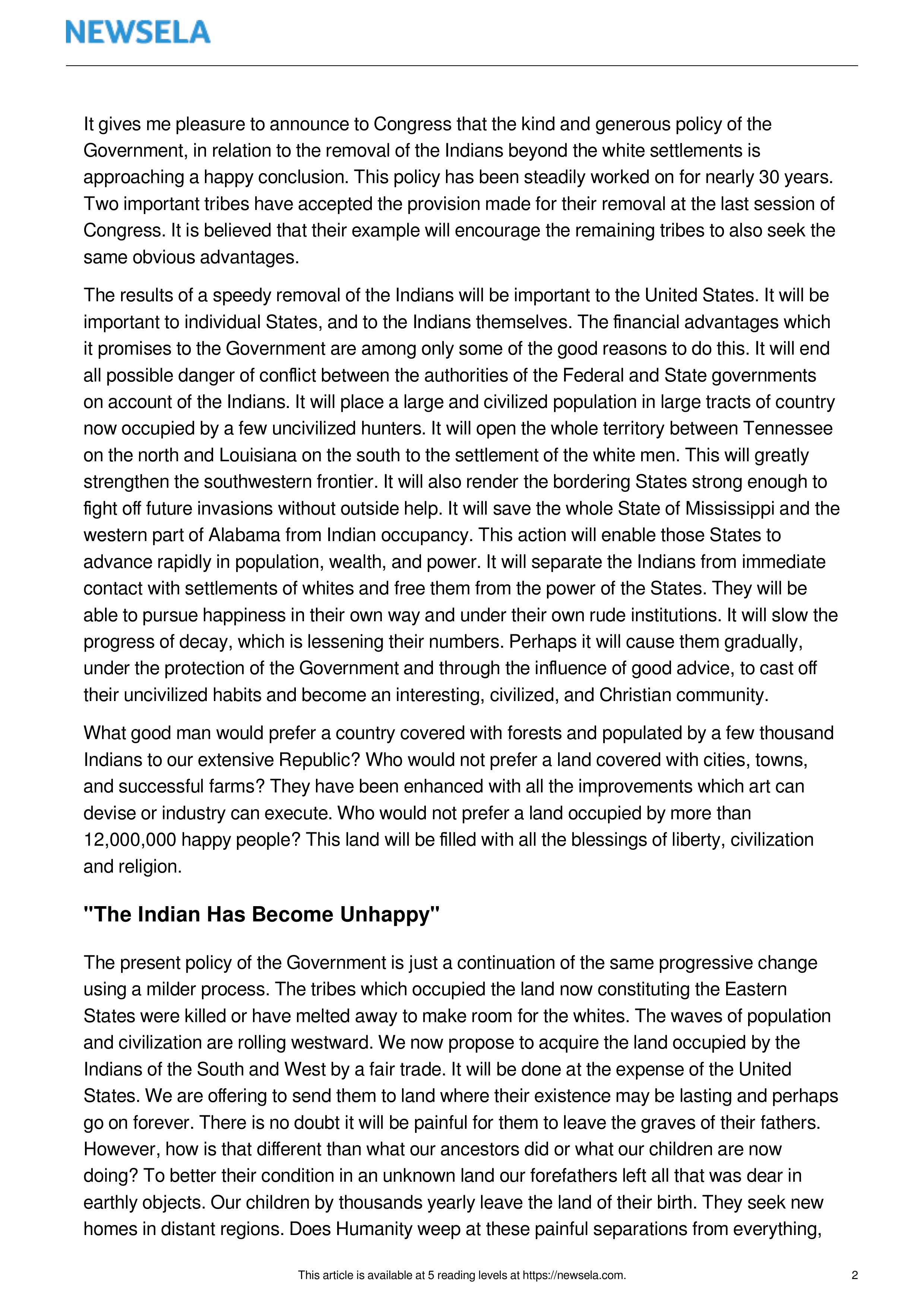Why does Jackson feel this move would be beneficial to the Native American tribes?