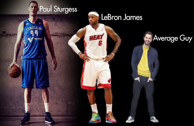 Write down your guess as to what fraction is LeBron James of Paul Sturgess? What about the average guy? Show your work.