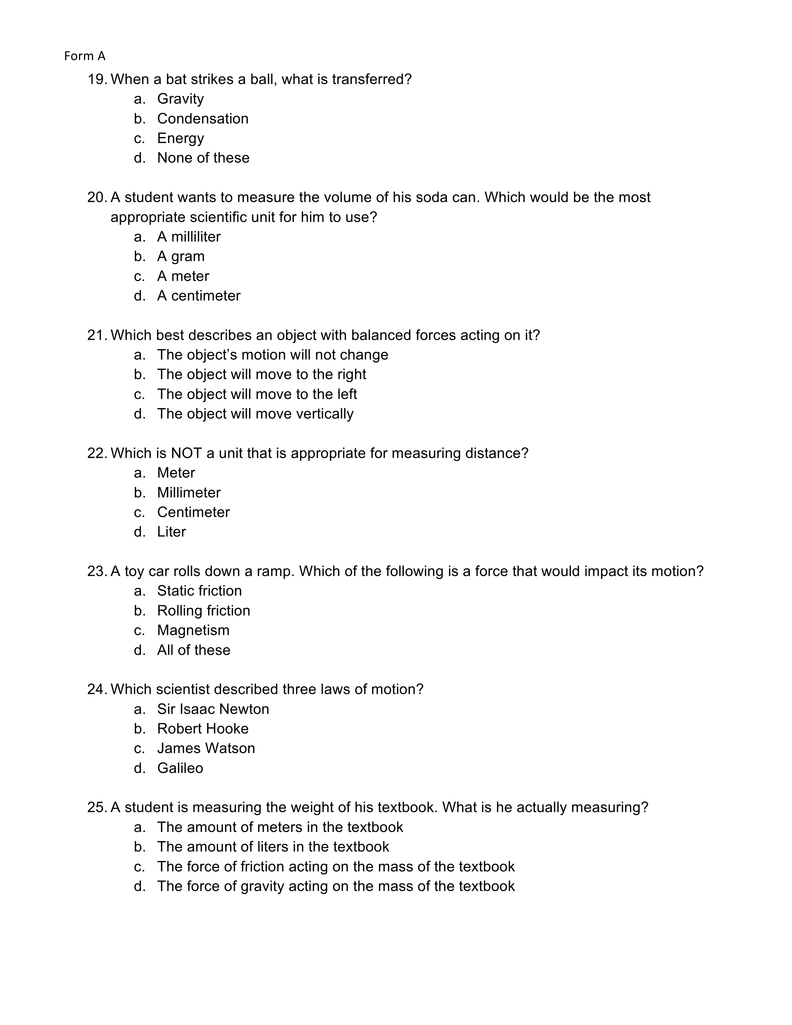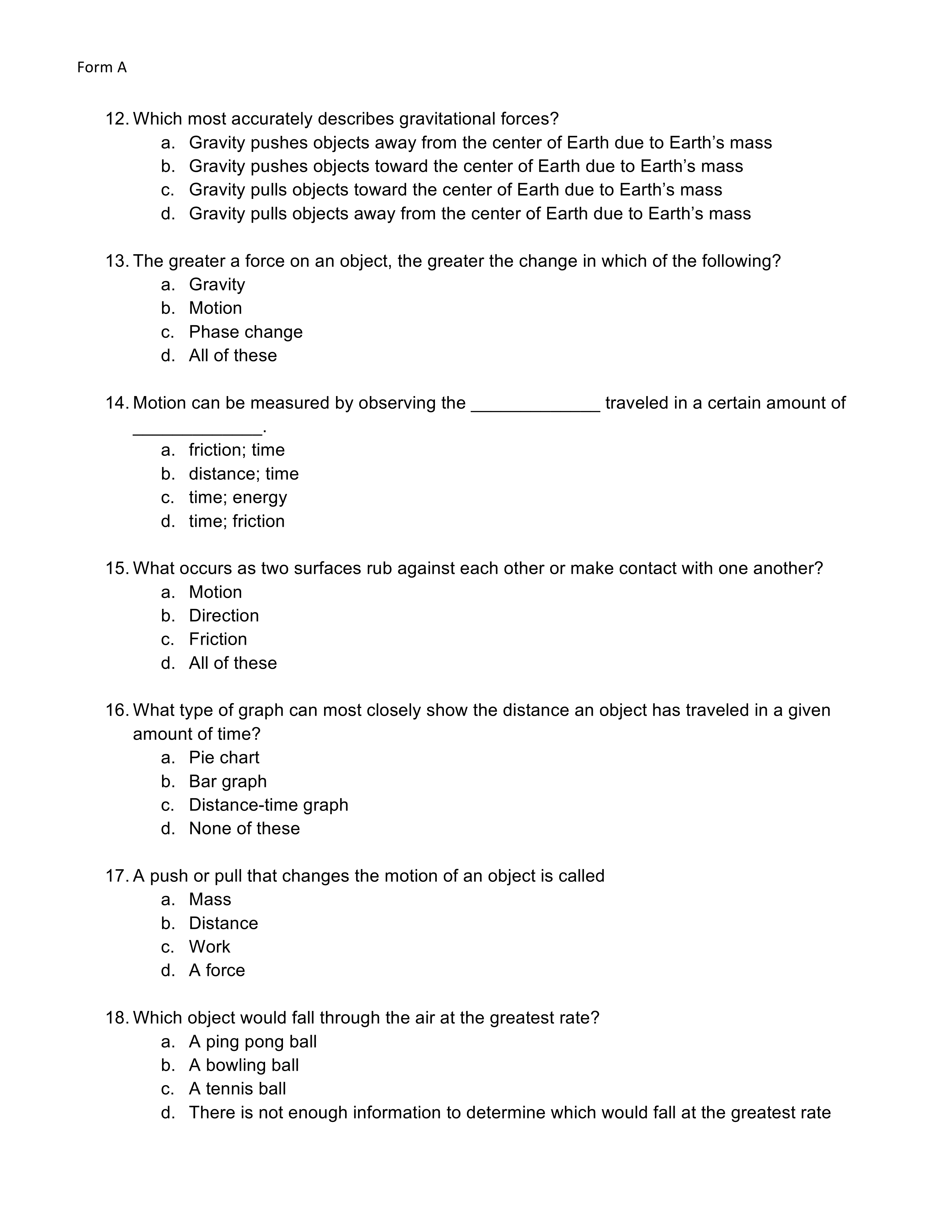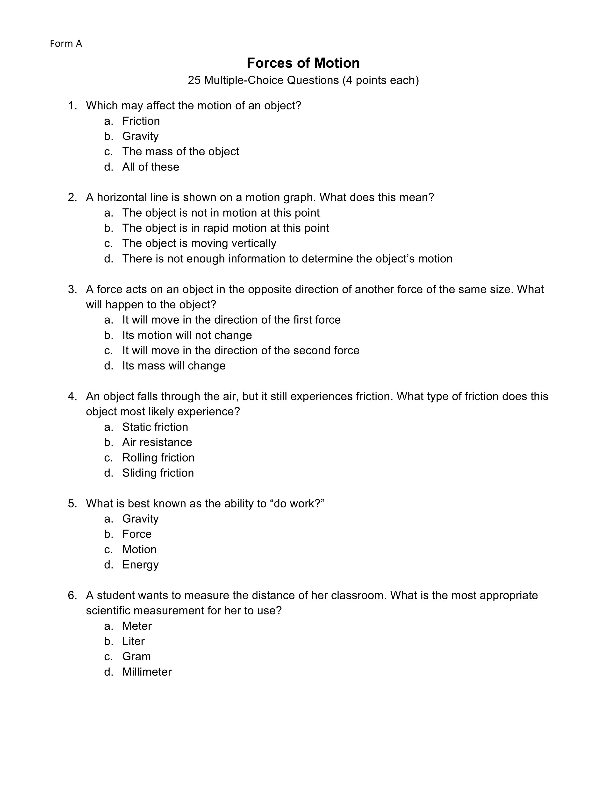 Force and Motion Learned Form A