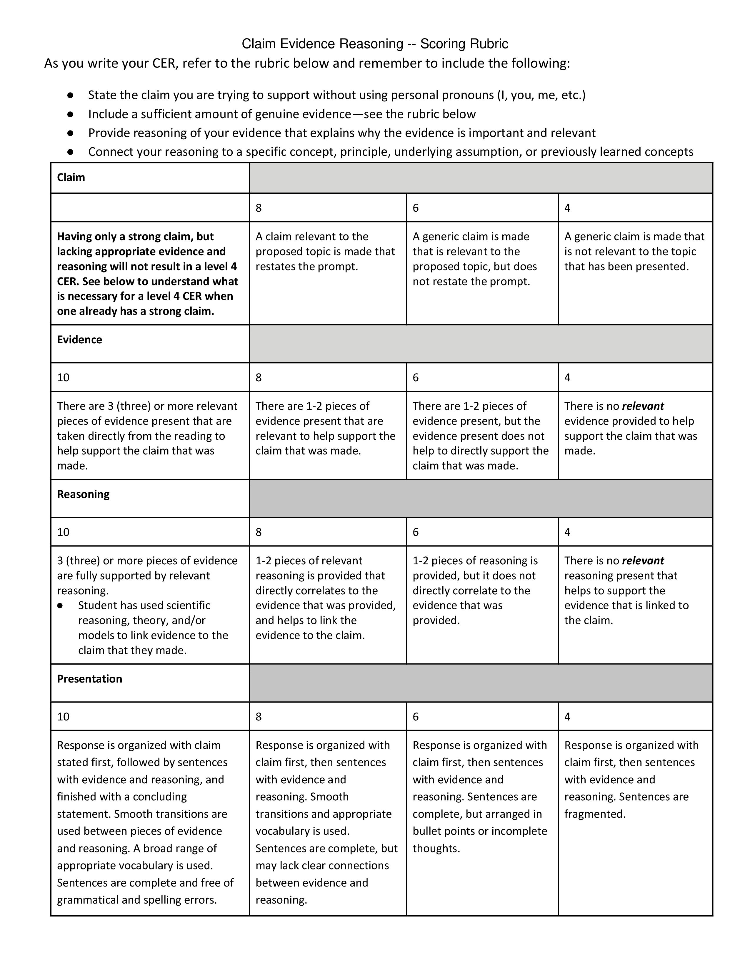 did you use the rubric to help you write your CER?