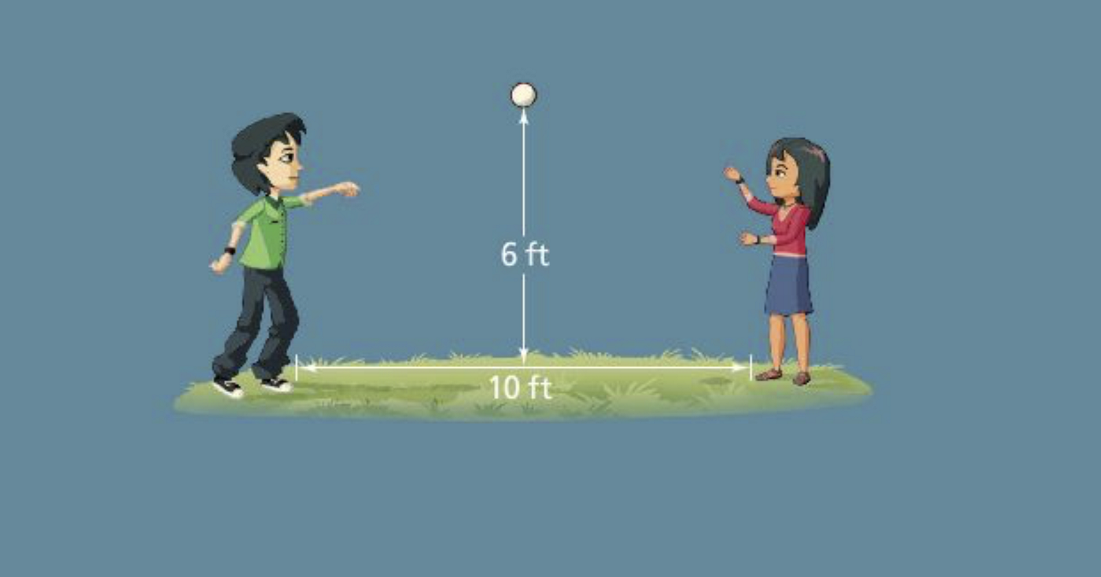 Solve It! You and a friend are tossing a ball back and forth. You each toss and catch the ball at waist level, 3 ft high.