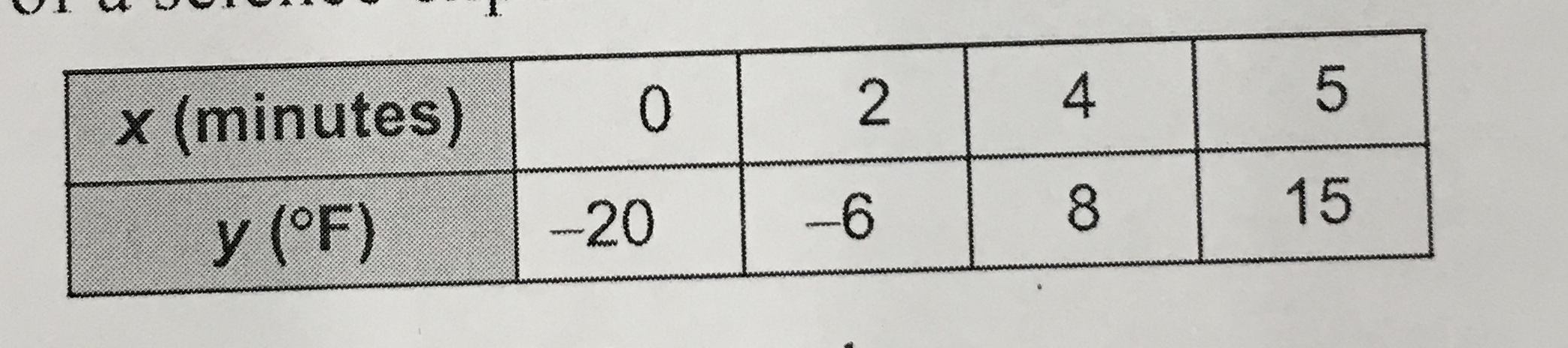 The table above shows the results of a science experiement. Find the rate of change.