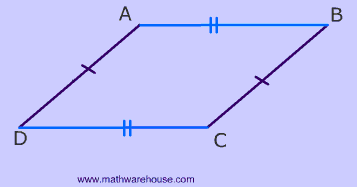A 4-sided flat shape with straight sides where opposite sides are parallel and equal in length.