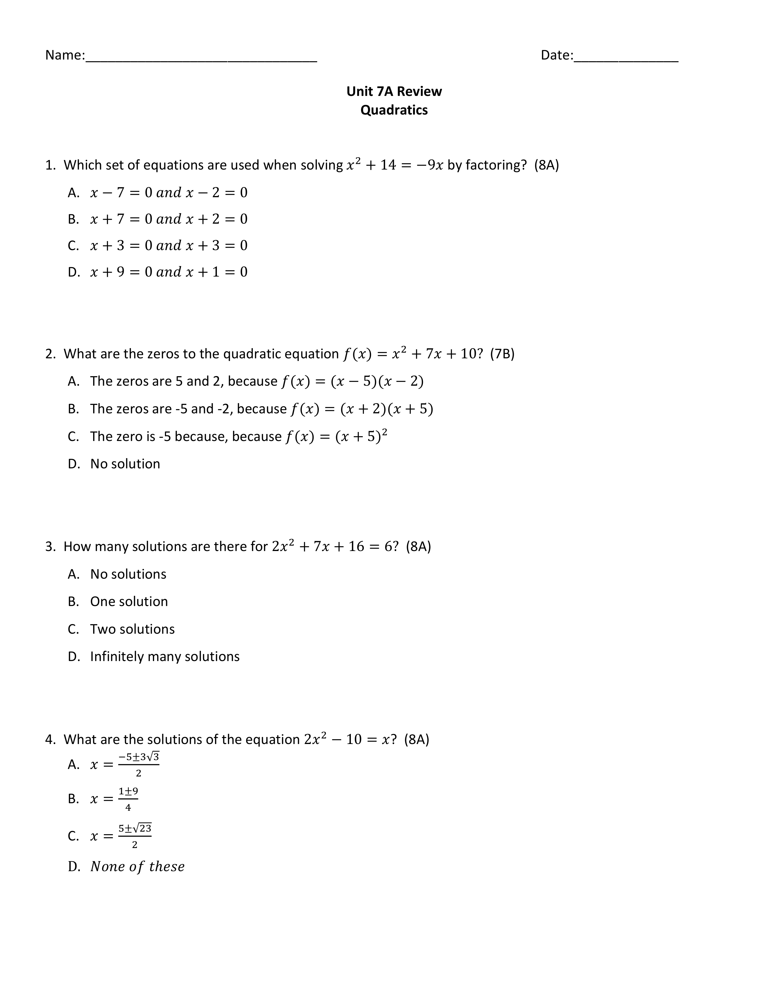 Unit 7A Test Review