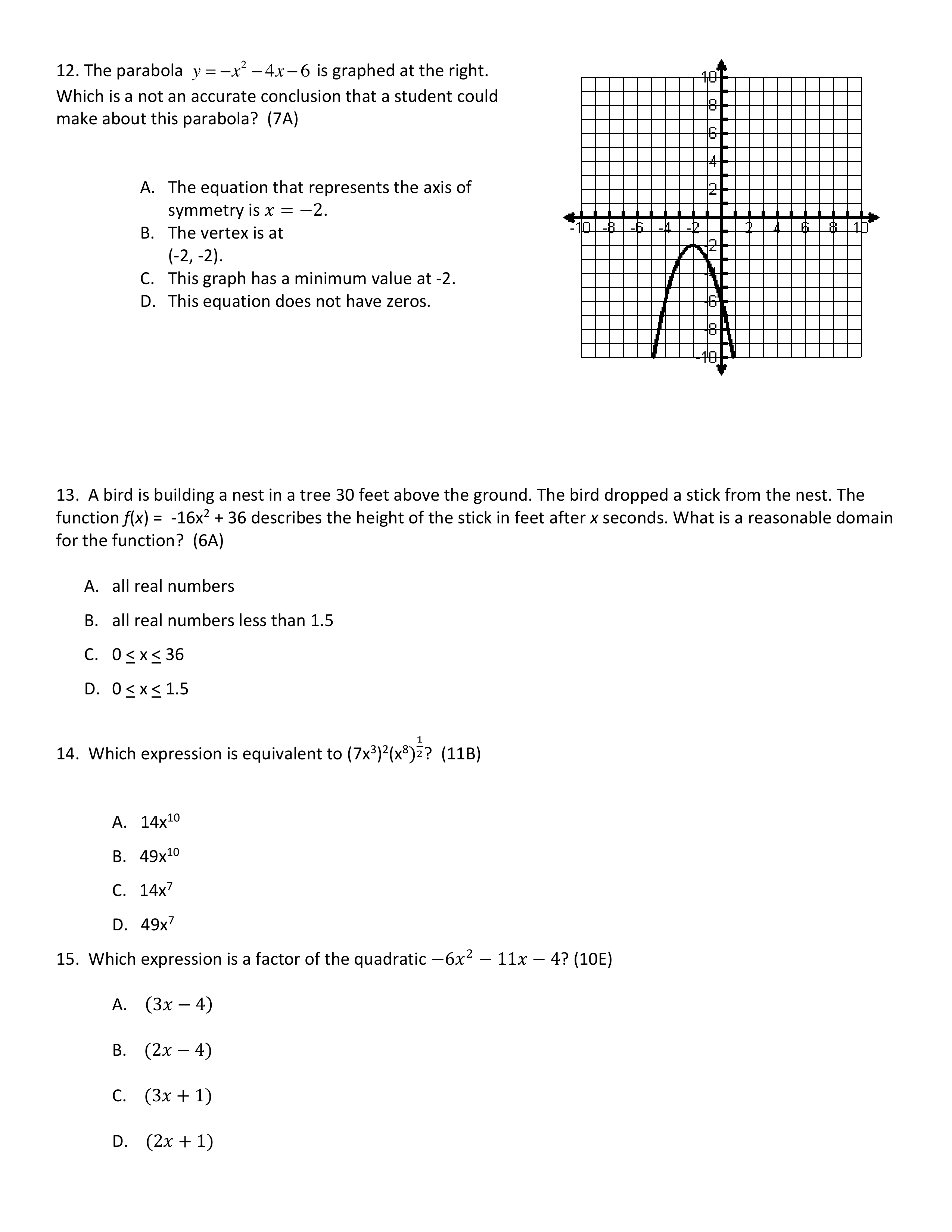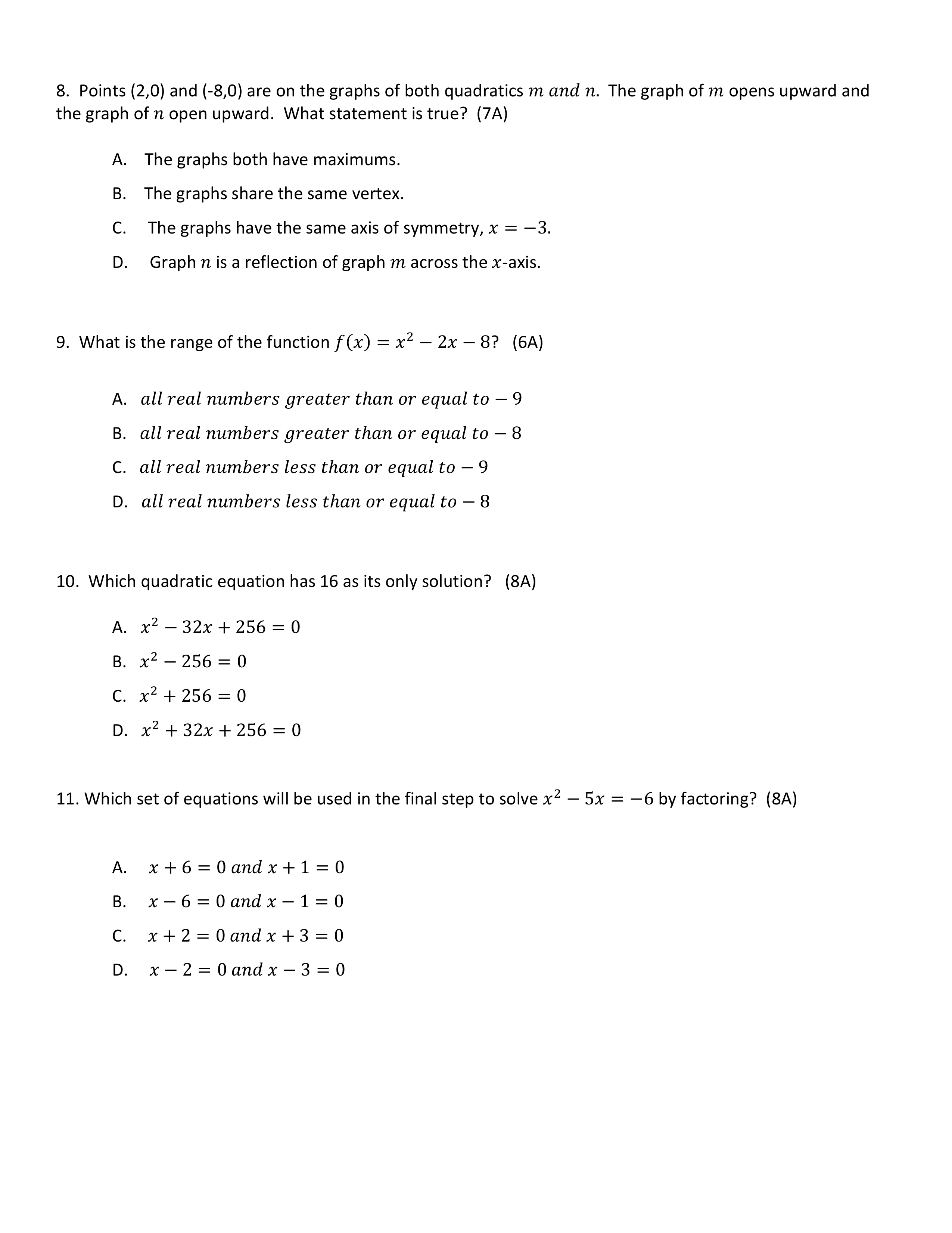 Quadratics Test Review