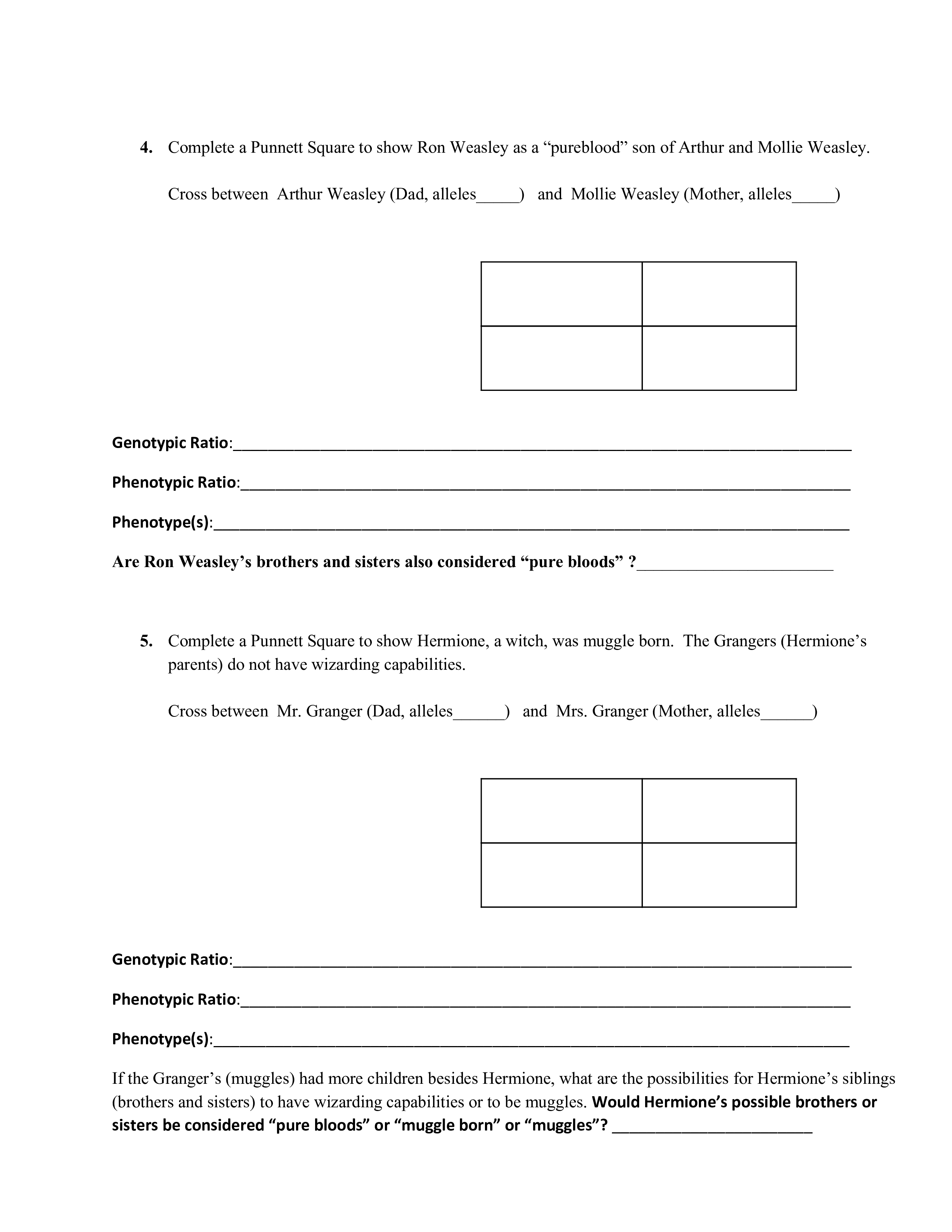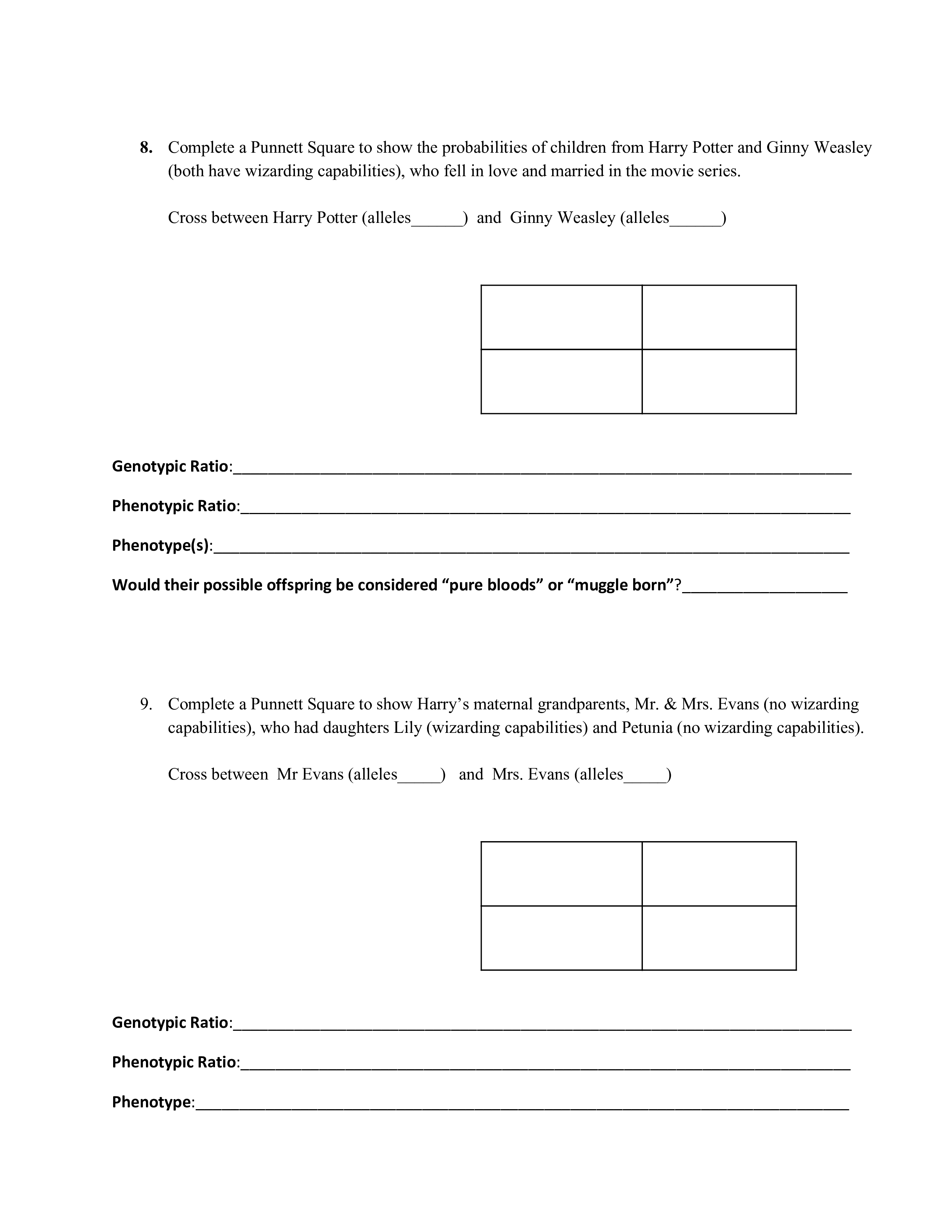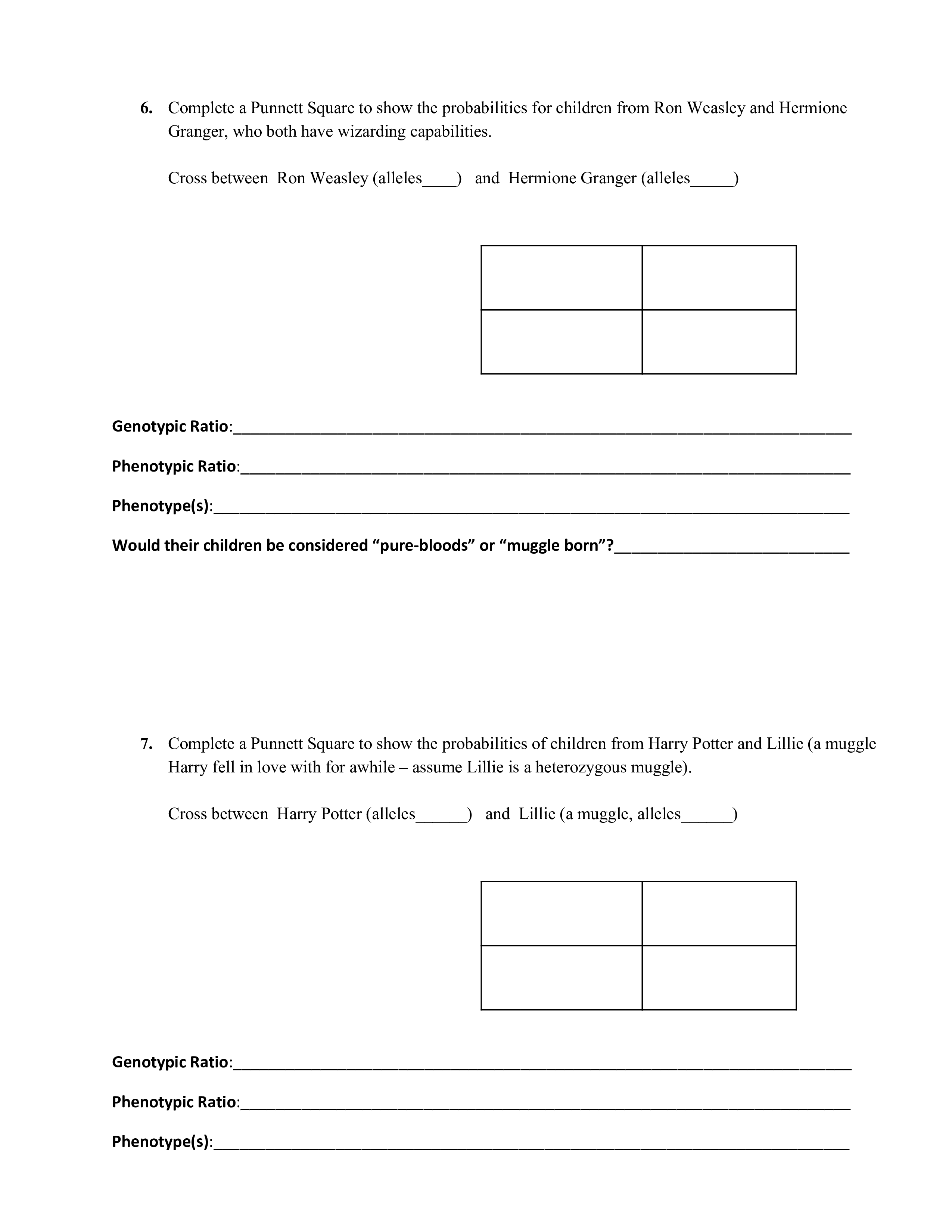 Complete the punnett square with the appropriate recessive wizarding alleles.