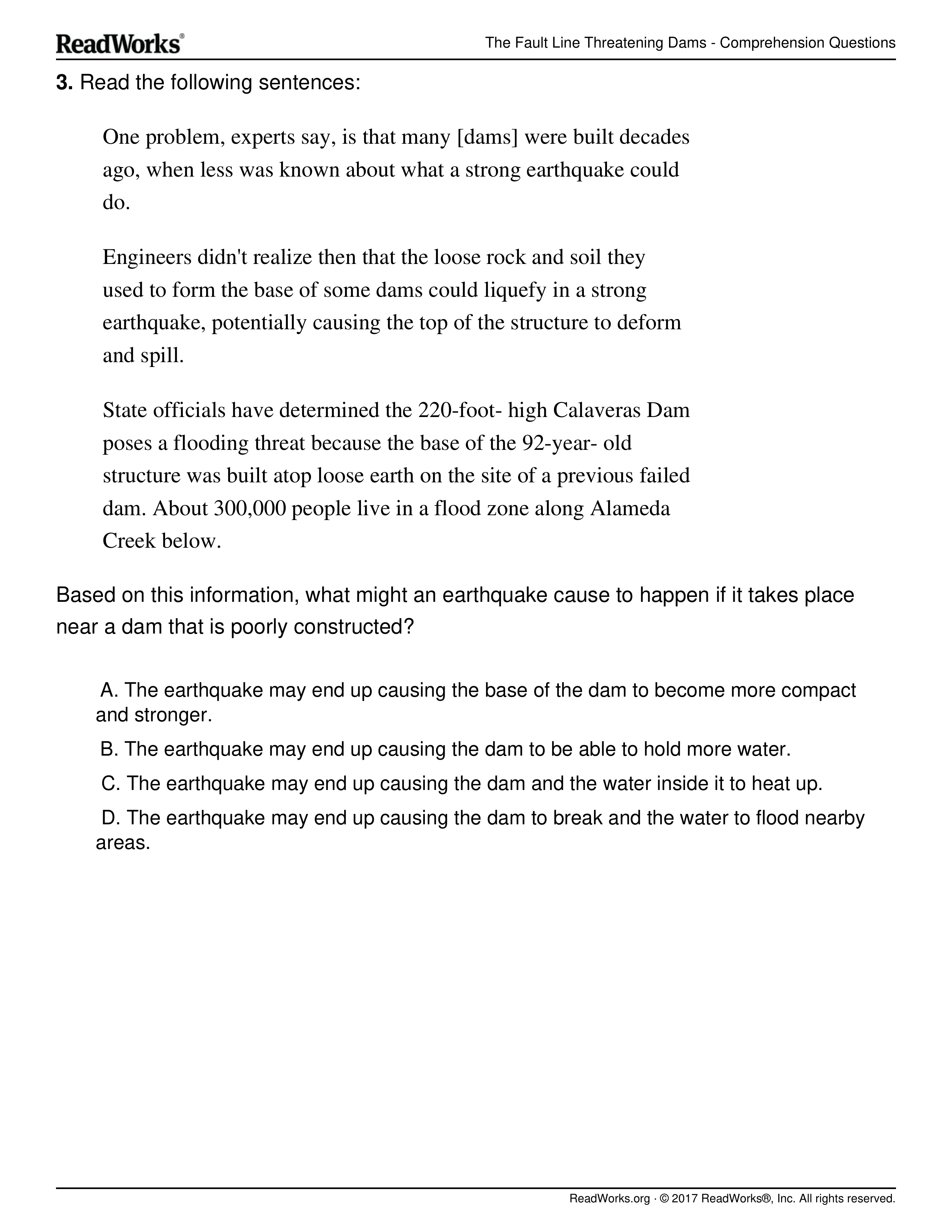 Choose the answer that best completes the sentence below: The new Calaveras Dam has been engineered to prevent it from breaking during an earthquake. _________, it is being strengthened, in part, by having zones of compacted material, including a thicker core of impermeable clay.