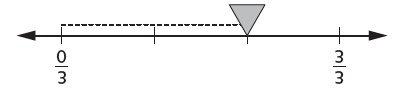 Draw a line showing fourths and label each mark with fractions from 0/4 to 4/4.