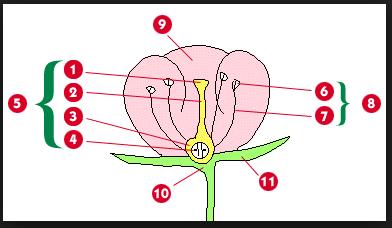 #13 - 15. Considering the placement of the male reproductive structures, will this flower be more likely to self pollinate or cross pollinate?