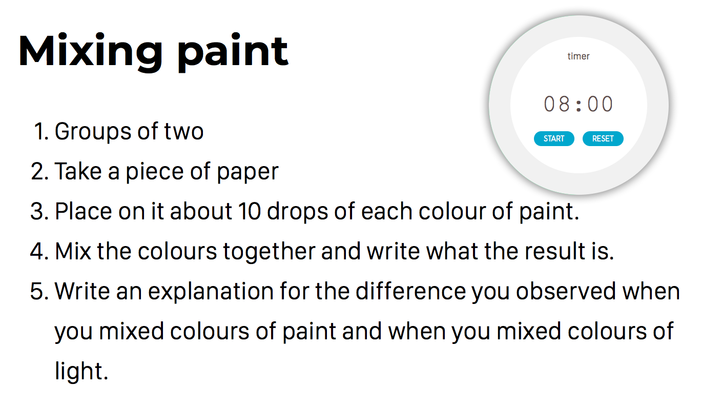 Why do you think there is a difference when you mix different colours of light as compared to when you mix different colours of paint?