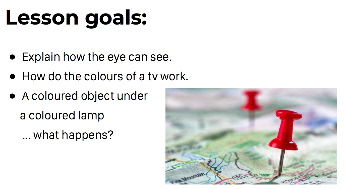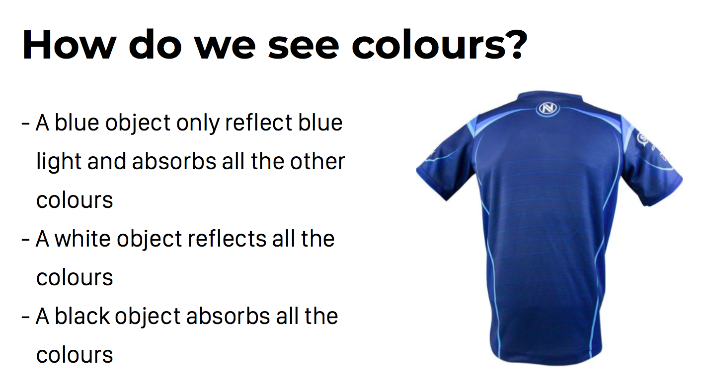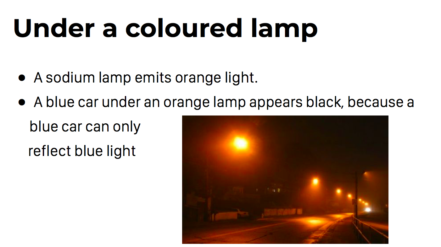 Under a coloured lamp it is possible for objects of colour to appear black.
