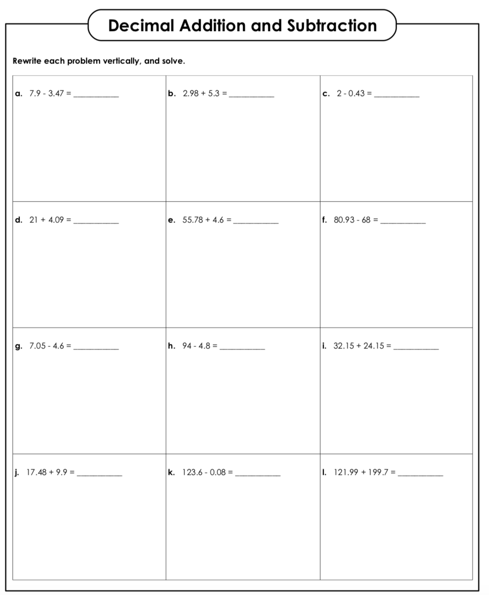 h. (E) Adding and subtracting decimals to the 'hundredths'
