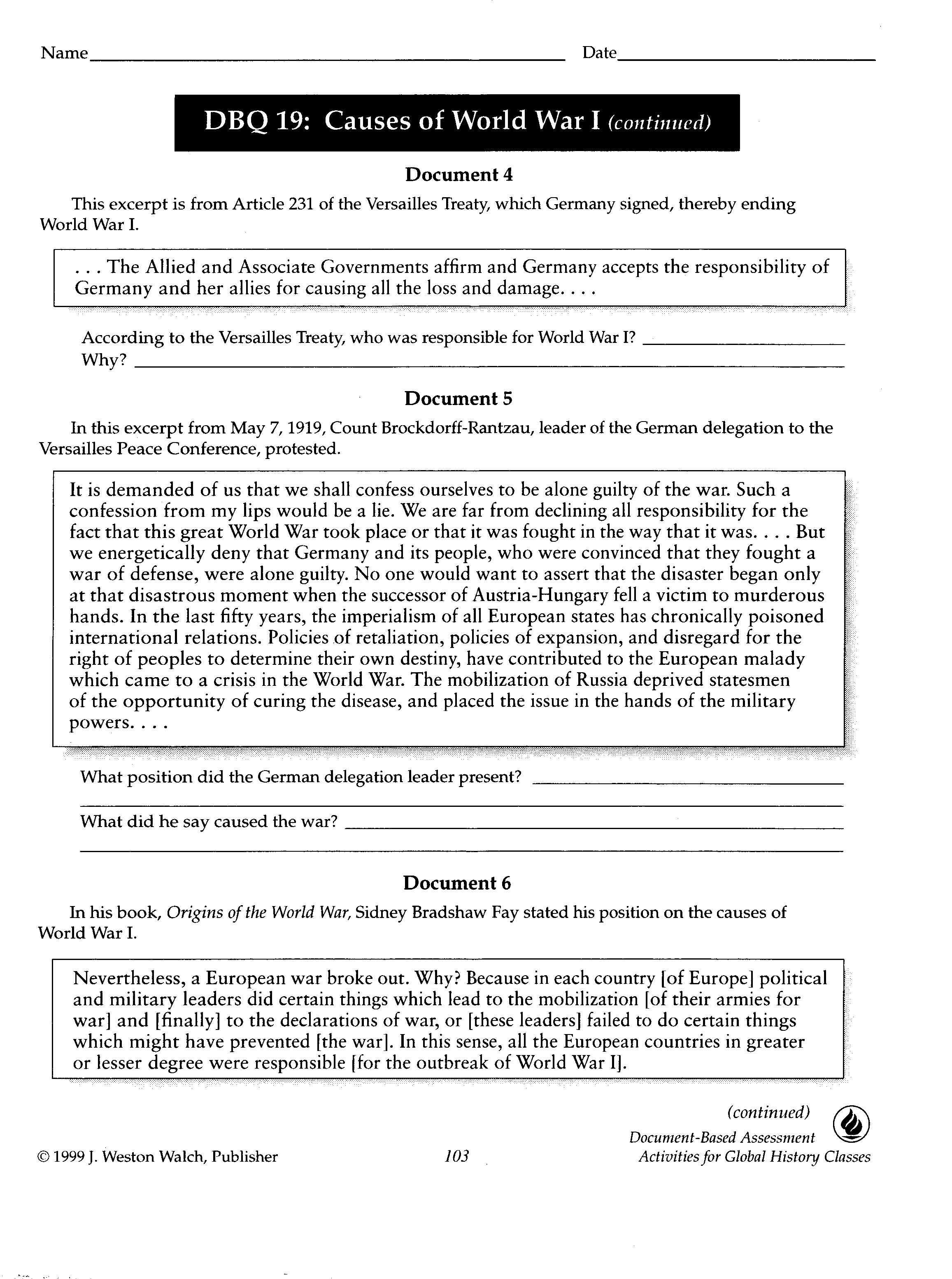 Accoriding to the Treaty of Versailles, who was responsible for WWI?