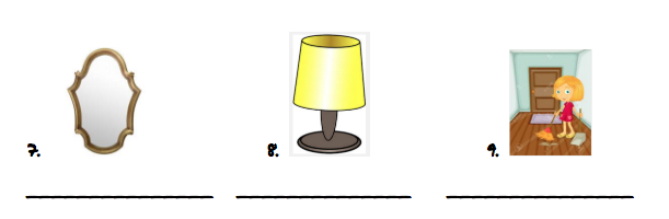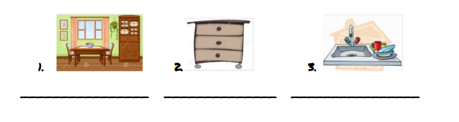 Dibuja: Es una casa blanca con dos pisos, 4 ventanas, una puerta verde, una piscina pequeña al lado de la casa.