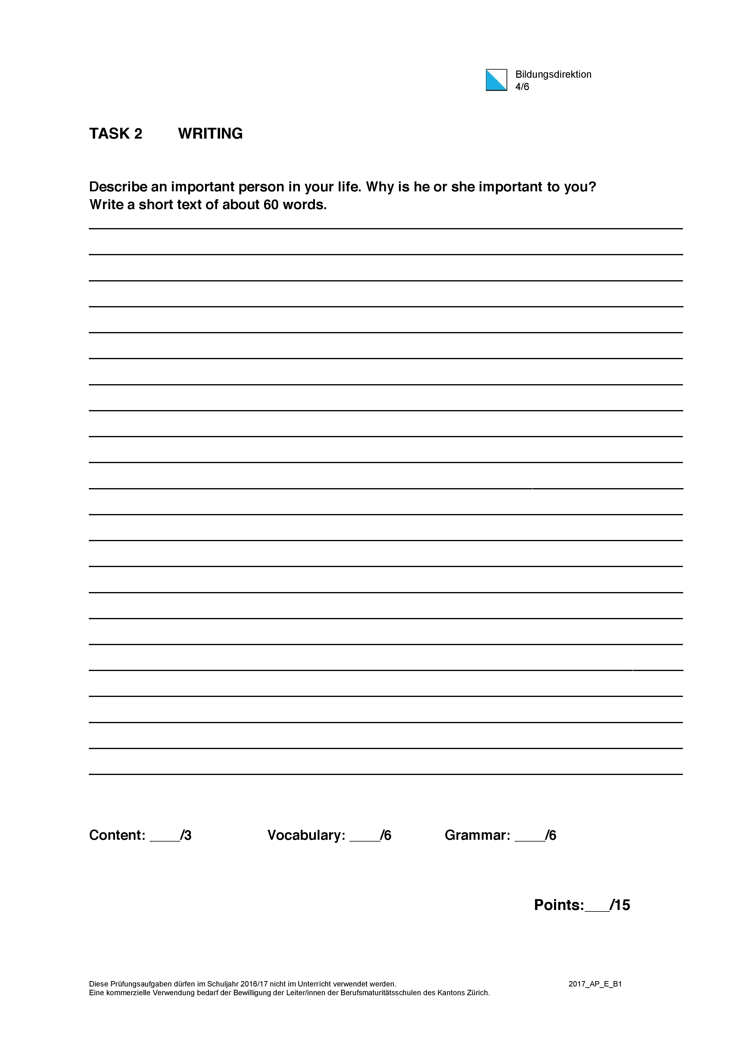 Describe an important person in your life. Why is he or she important to you? Write a short text of about 60 words.