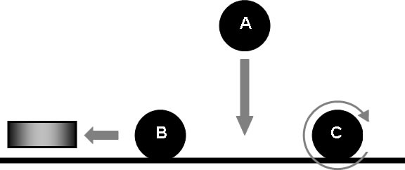 "Ball C" is rolling across the surface, but it eventually comes to a stop. Which force is most likely responsible for this?