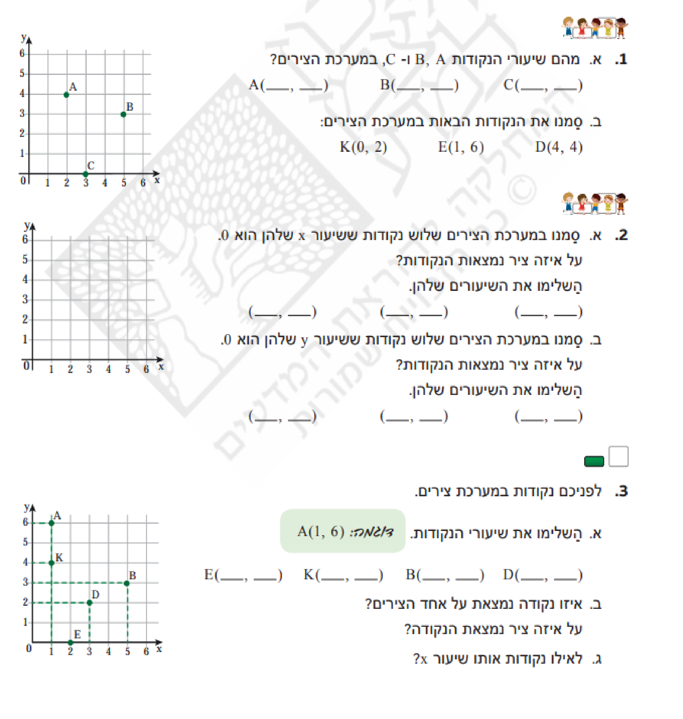 סמנו במערכת צירים 3 נקודות ששיעור ה-X שלהן הוא 0.