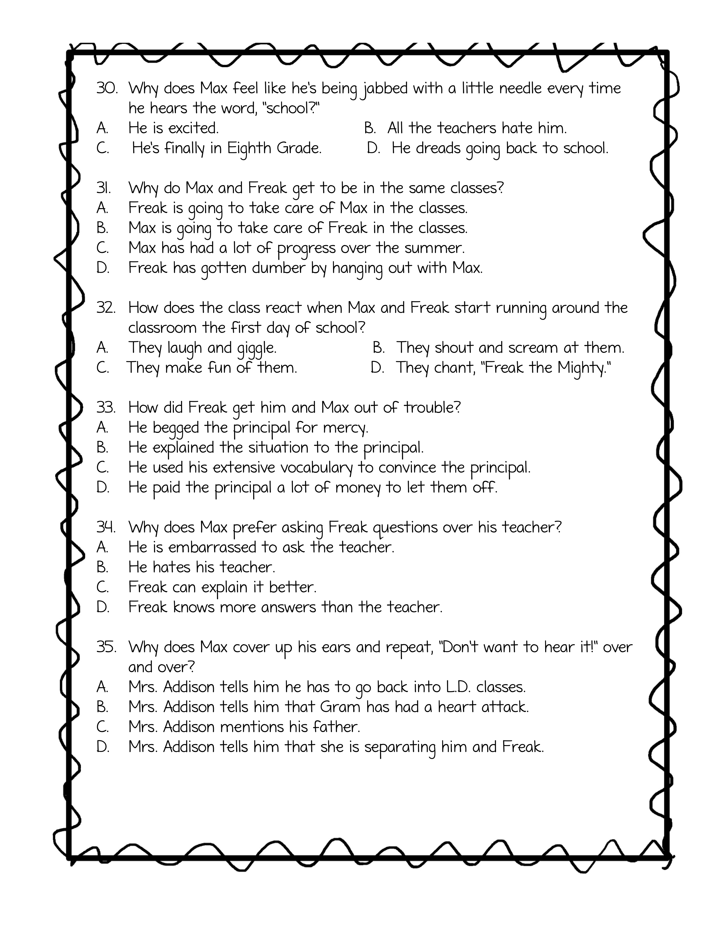 Freak the Mighty Quiz Chpts. 1-13 Retake