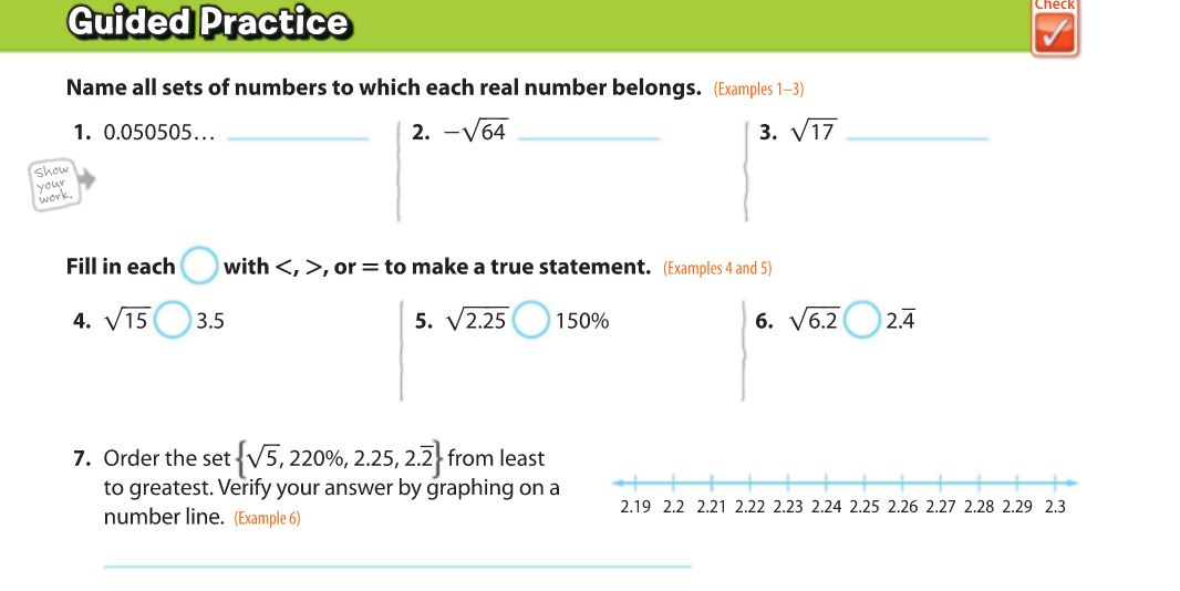 1.10 Compare Real Numbers Guided Practice TB Pg. 92