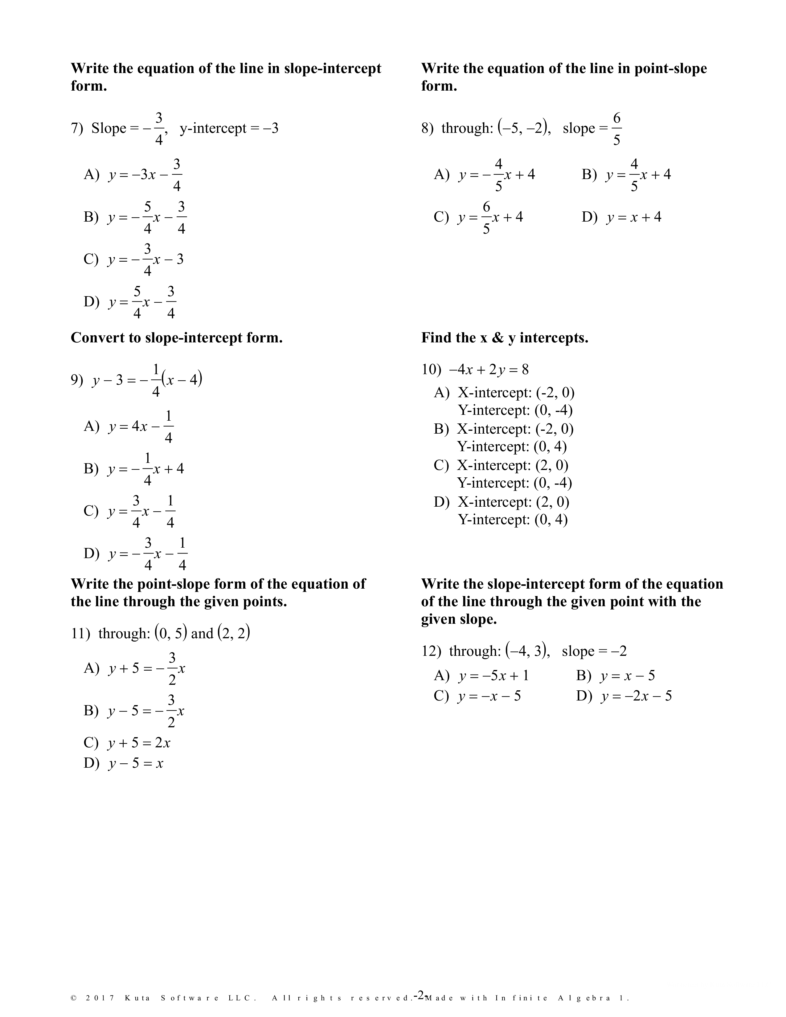 Ignore the multiple choice options. Write the equation in point-slope form.
